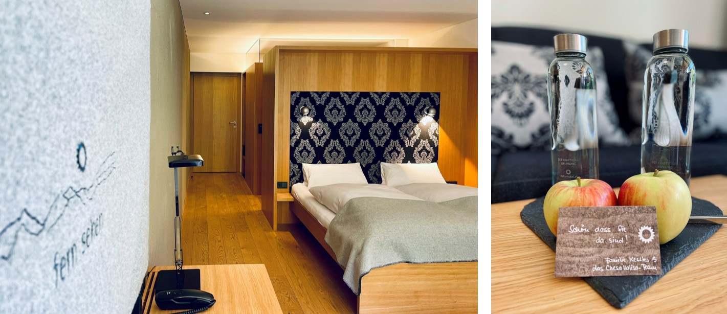 In Hirschegg checken wir im traditionsreichen Naturhotel Chesa Valisa ein. Bereits seit 14 Generationen im Besitz der Familie Kessler, schreibt es nun schon mehr als 500 Jahre Geschichte. Insgesamt 55 Zimmer laden auf charmante Weise zum Abschalten ein. Unser Doppelzimmer Komfort mit Parkettboden, Lehmputz, Holzelementen und natürlichen Stoffen bietet modernes Flair auf 30m² und damit viel Raum zum Entspannen.